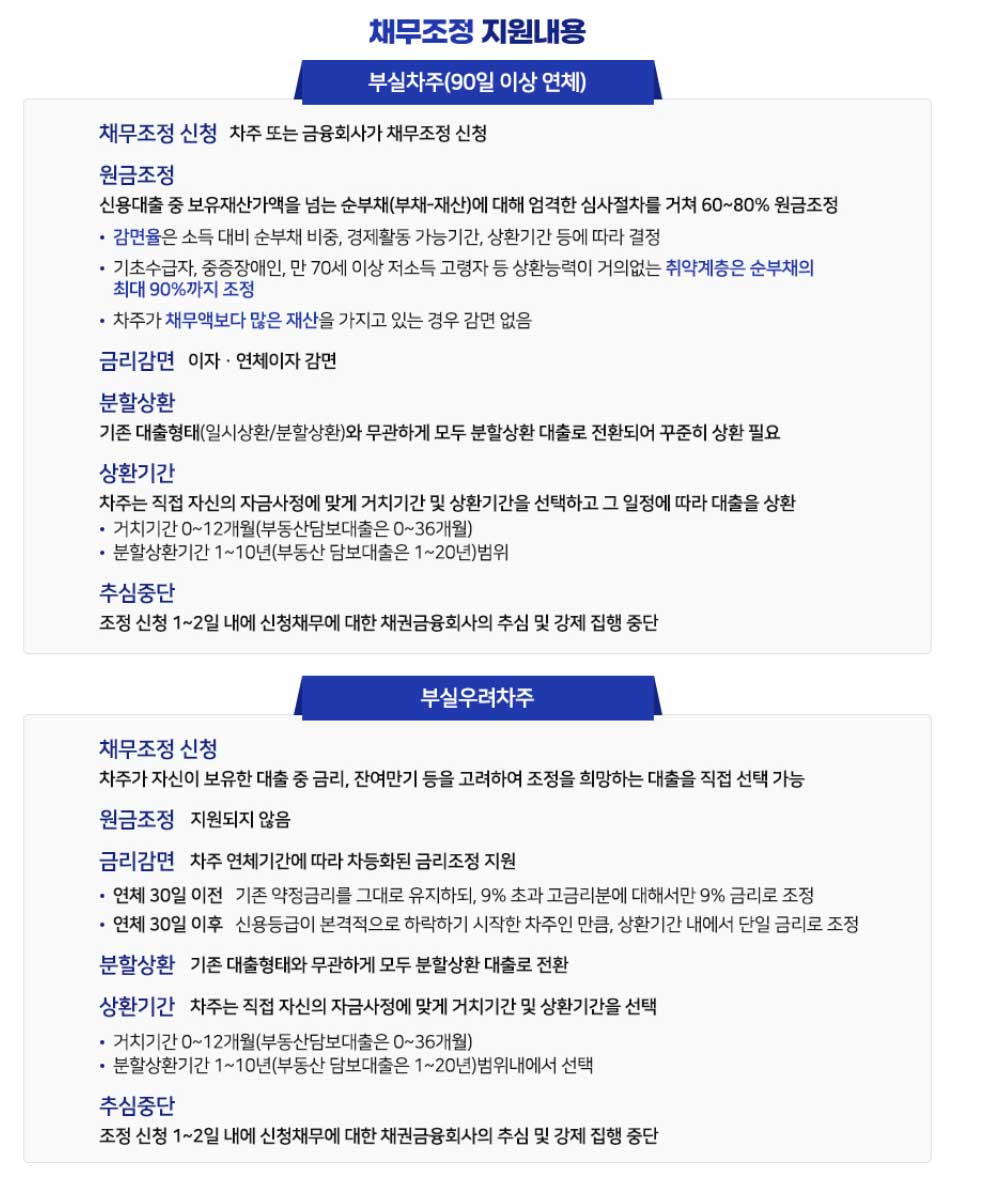 새출발기금 채무조정 지원내용